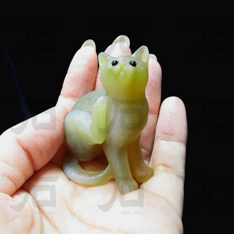 天然石ならではの柔らかな色合いと艶が、猫の穏やかな姿を一層引き立てます。