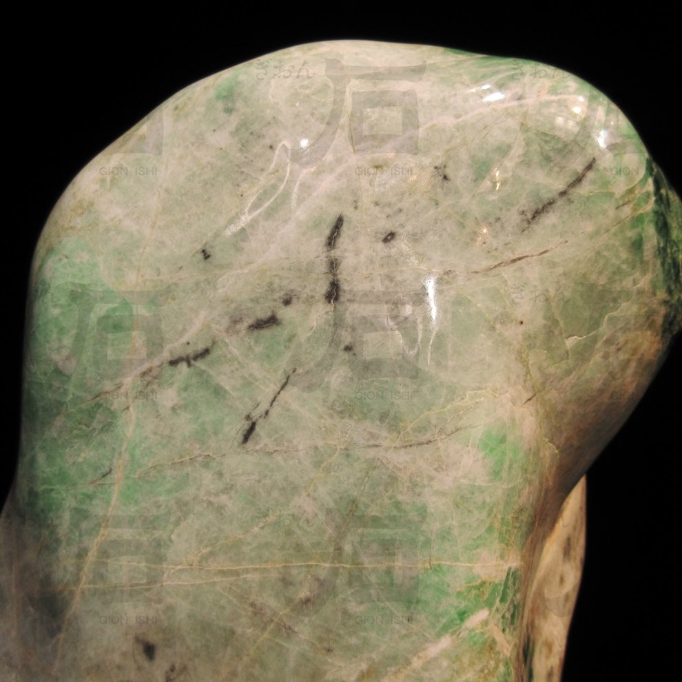 鮮やかな蛇紋岩部分が一見目を引きますが、柔らかな優しい緑に白、部分的には黒など、豊かな色彩の表情を楽しむことが出来ます。